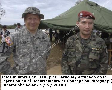 La embajada de EE.UU. promueve abiertamente estas operaciones de represión. Liliana Ayalde, embajadora de EEUU, dijo que los militares yanquis “ hacen estos ejercicios cívico- militares.” ( La Nación, 29/6/2010.) “El hecho de que se identifiquen ciertas zonas es por el hecho de que no hay presencia del Estado y se quiere llegar a esas comunidades. Queremos apoyar al Gobierno en este caso al Ejército Paraguayo. Si eligen una zona conflictiva allí estaremos”, reafirmó la embajadora de EE.UU., Liliana Ayalde. ( Abc Color, 29/6/2010.)